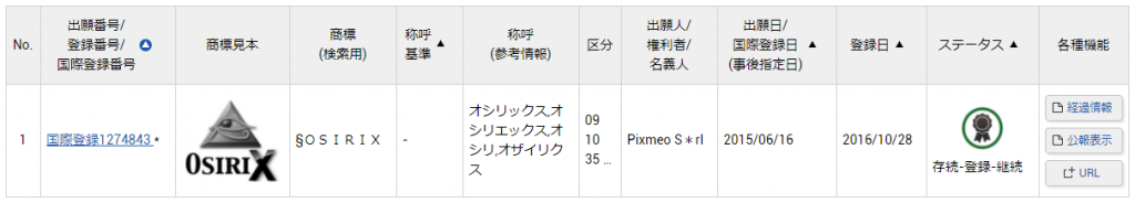 商標が成立していると記載されているようですが少なくとも今日現在「Horos」は登録されていないようです。