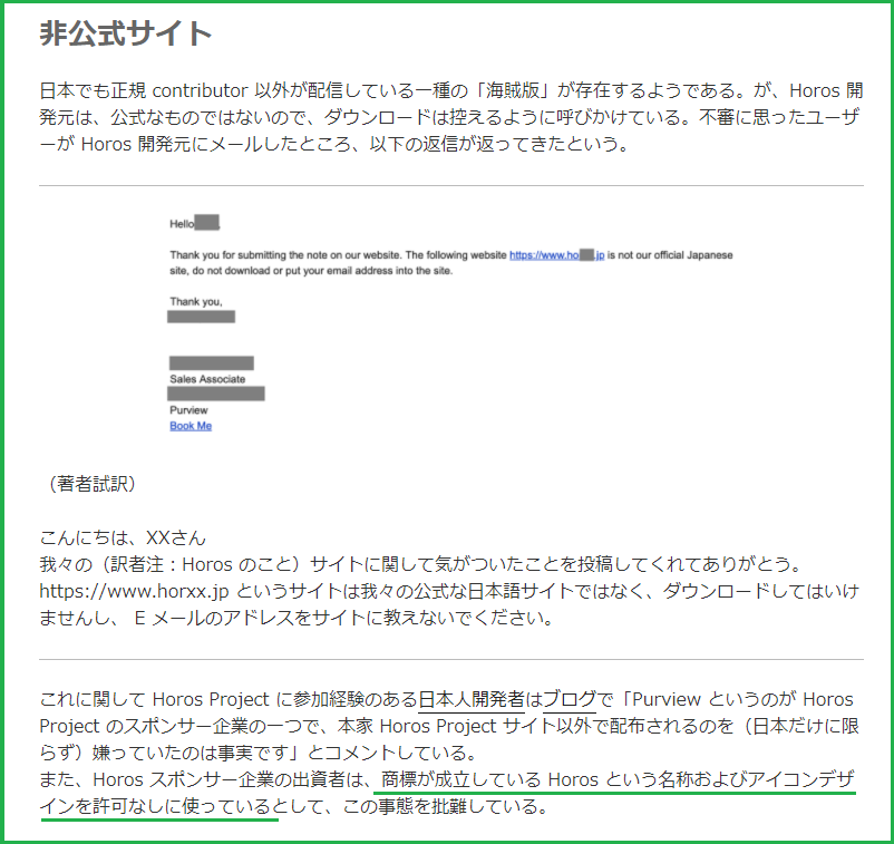 日本語版 Horos のサイトを「非公式サイト」と称して以下のように非難しているようですが出所不明のメールを表示したり勝手な解釈をしたりと相変わらず情けない話ですね。