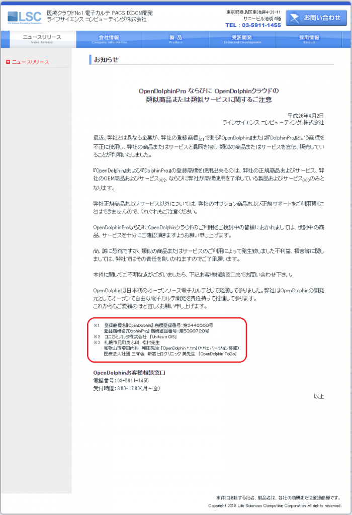 LSC からは以前「OpenDolphin」の商標に関するコメントが出されています。